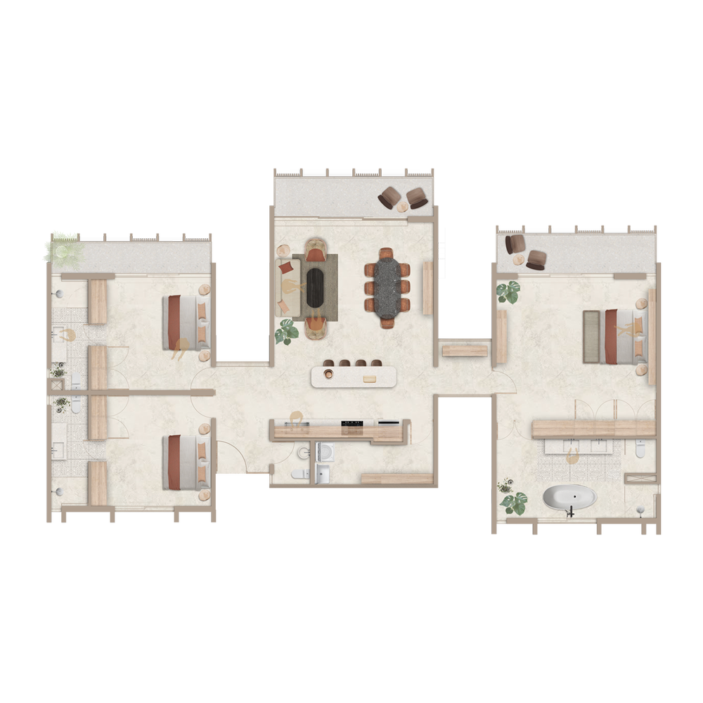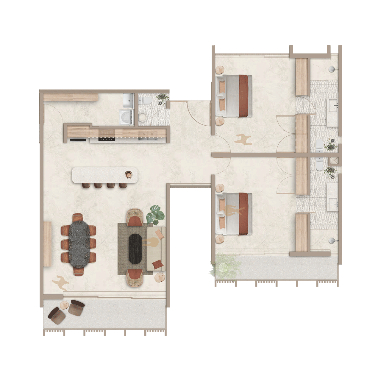 A forefront pristine fluent wave highrise unfolding along Novo Cancun’s exclusive and privileged shoreline.