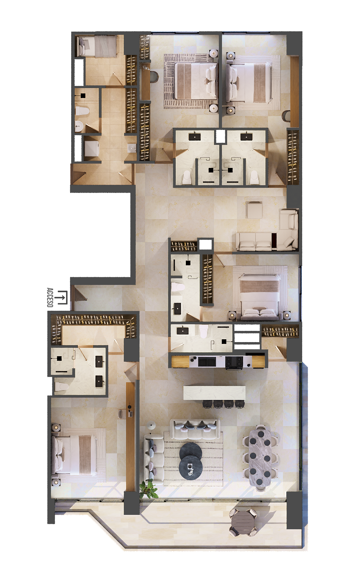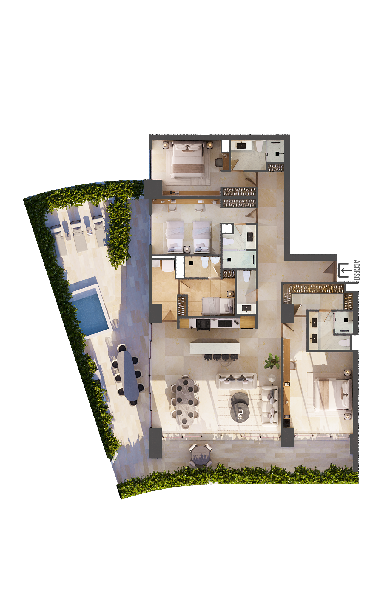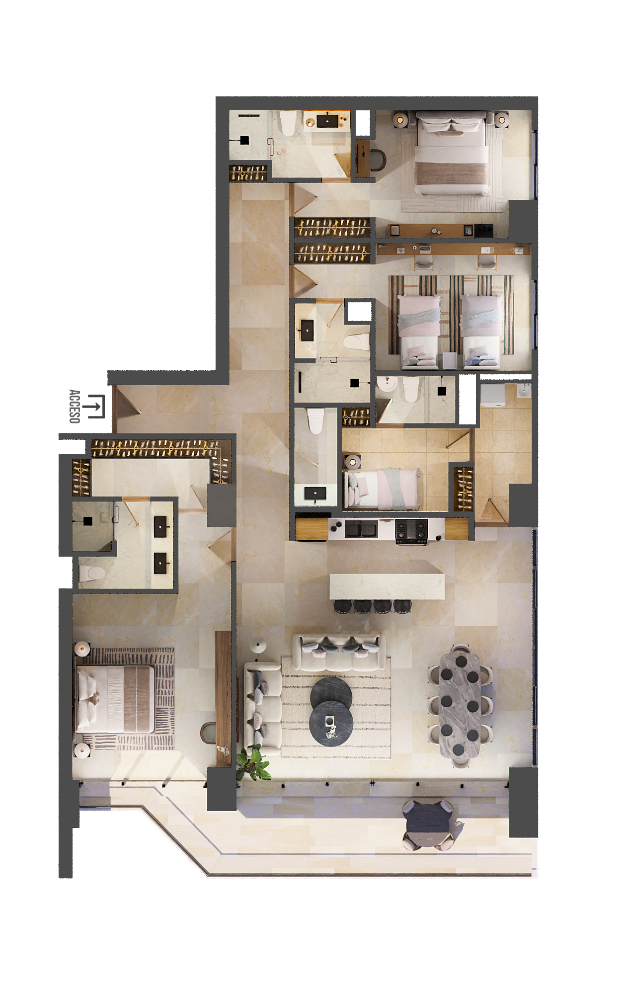 A forefront pristine fluent wave highrise unfolding along Novo Cancun’s exclusive and privileged shoreline.