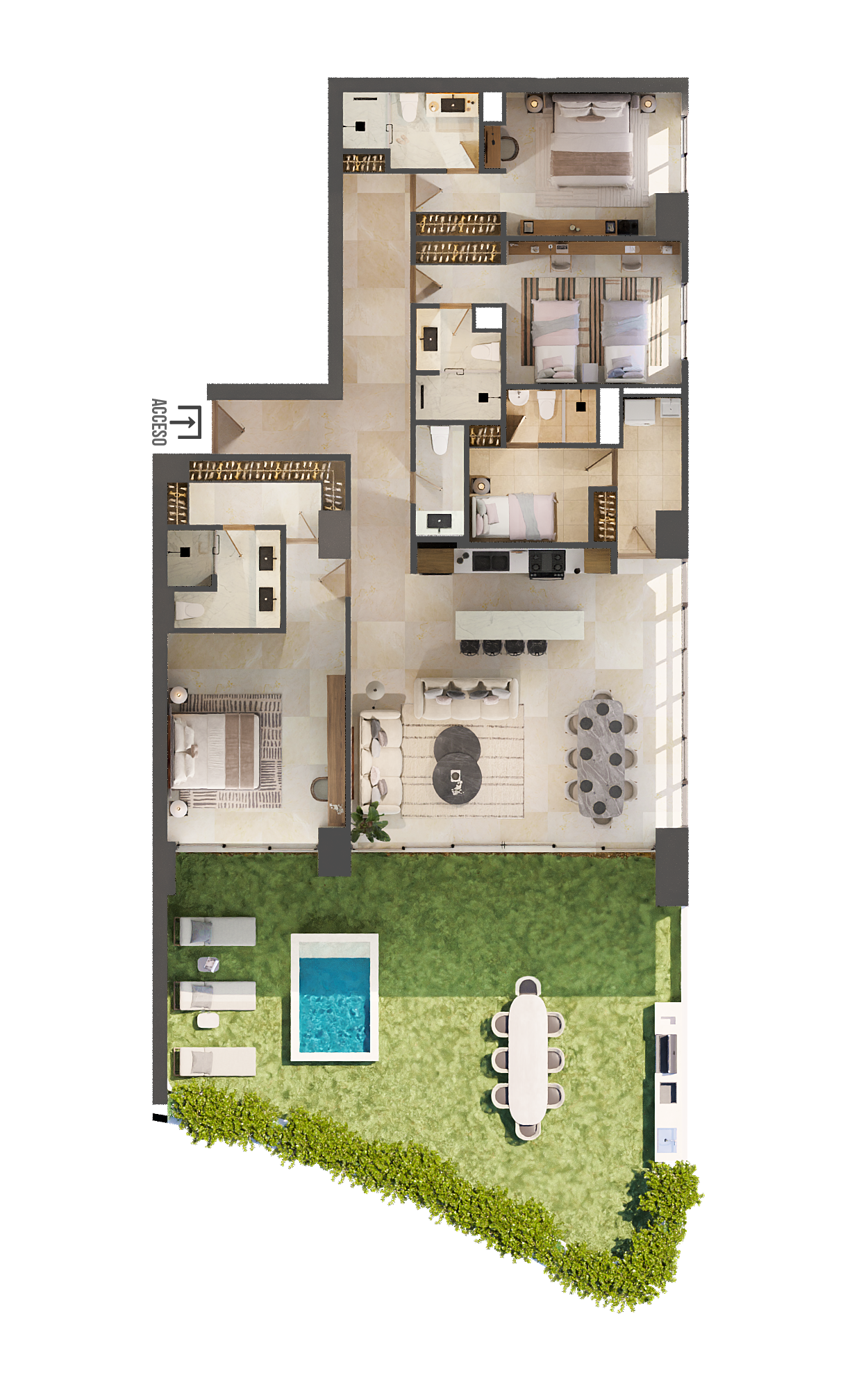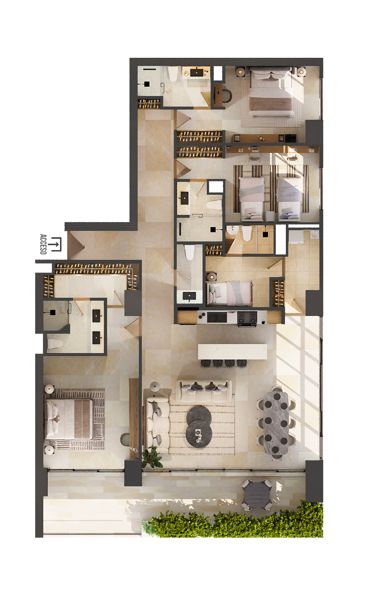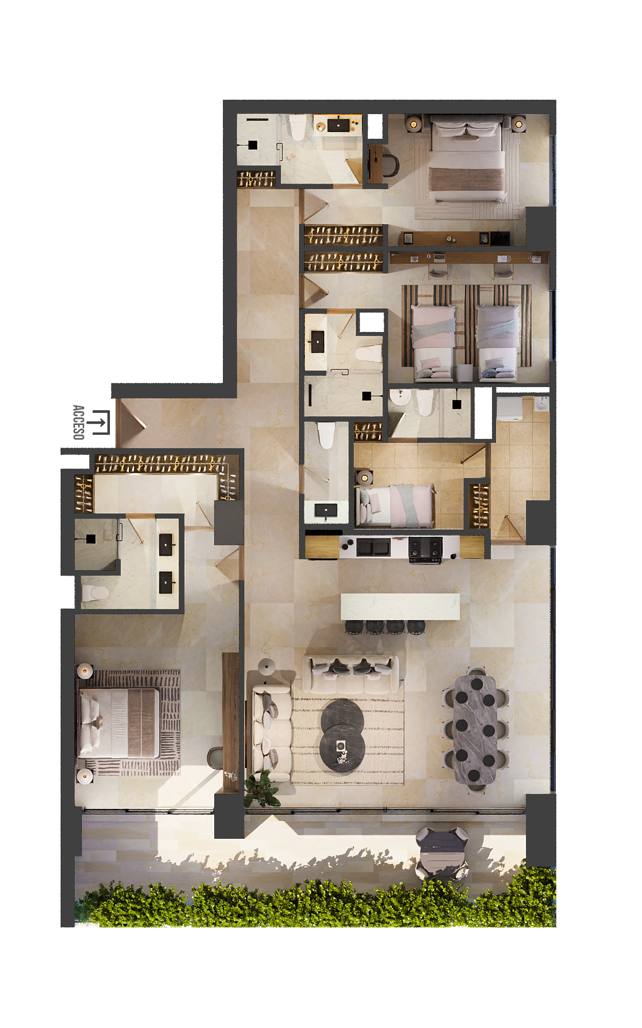 2 to 4 Bedroom units.